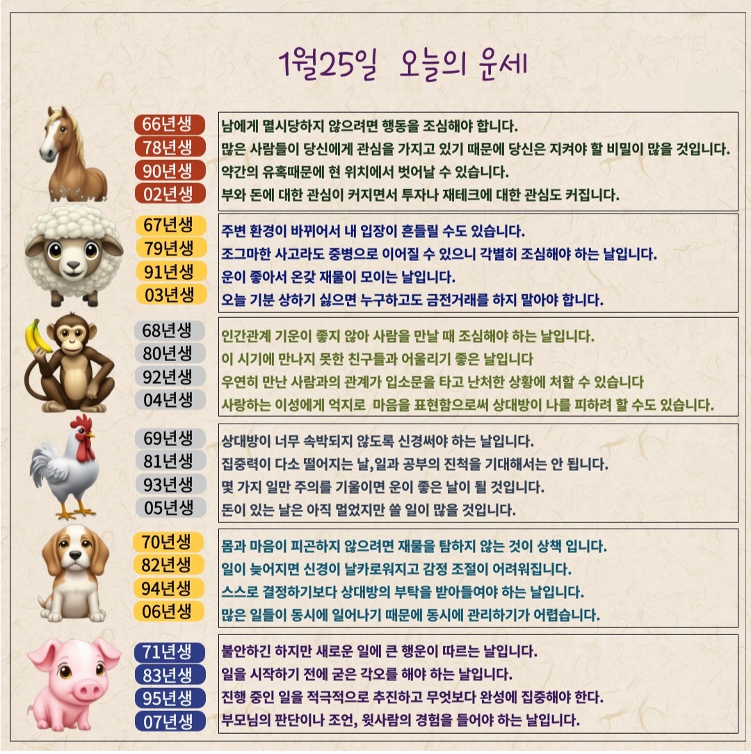 2026년 1월25일 운세입니다♧ (조심할것 위주) 재미로보시고가세요~