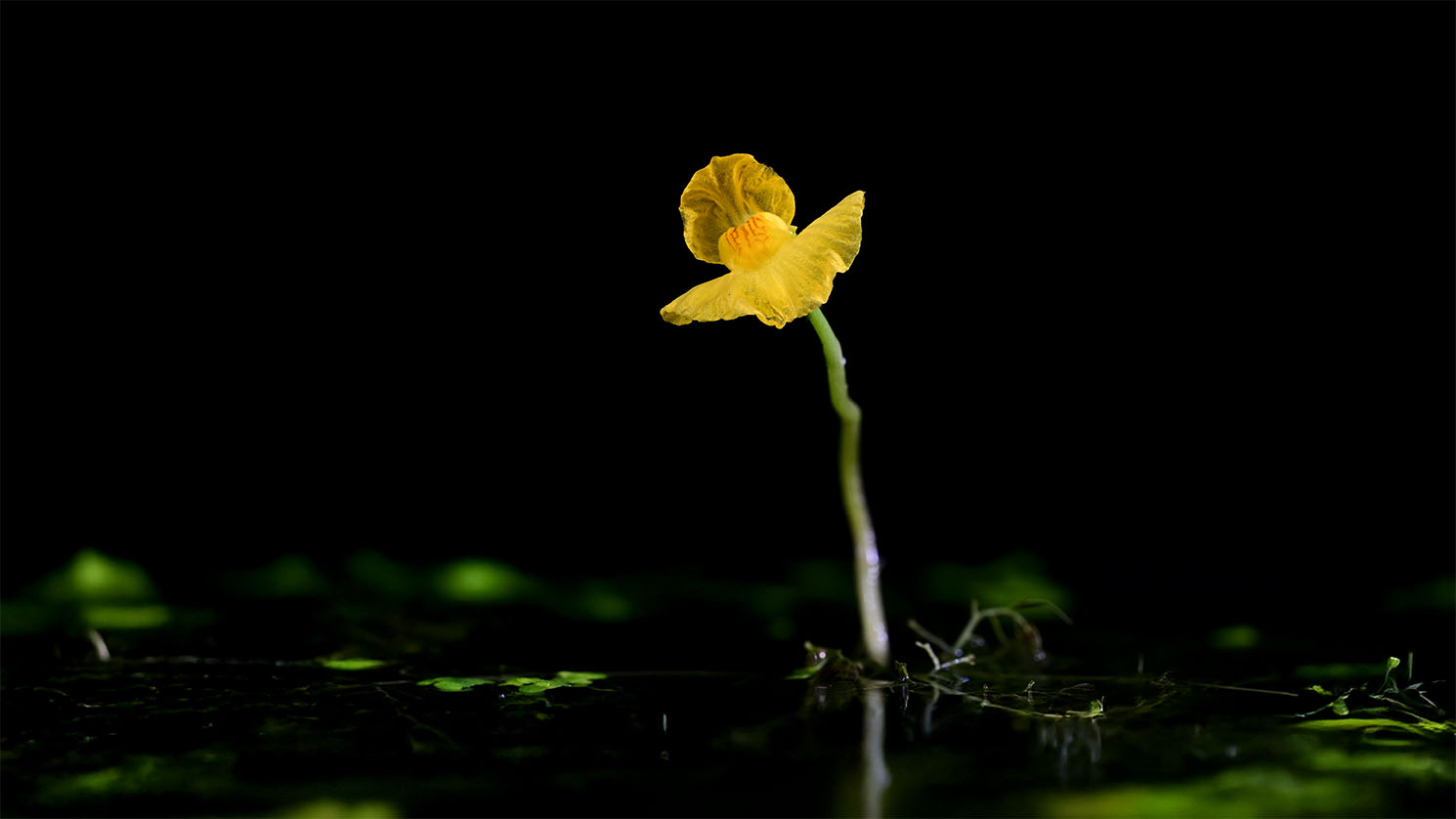 참통발은 물속에서 자라는 식충식물로, 벌레를 잡아먹는 독특한 특성을 가진 식물입니다. 우중충한 물속에서도 샛노란 아름다운 꽃을 피우는 반전 매력이 있지요.