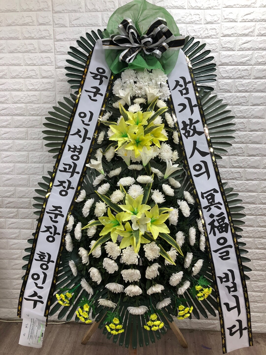 완벽한 대칭을 이루는 큼직큼직한 사이즈의 근조3단화환!
