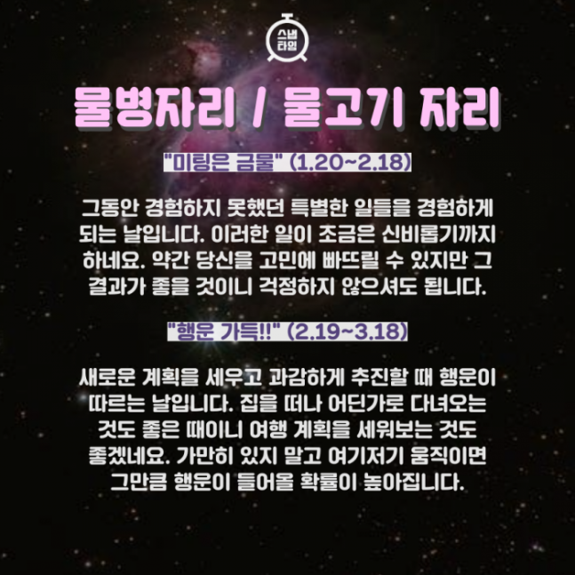 재물운은 나쁘지 않지만, 물고기자리 사람과는 어느 정도 거리를 두세요. 남에게 돈을 빌려주면 오히려 당신이 피곤해질 수 있어요. 돈 잃고 사람도 잃을 수 있으니, 가급적 피하는 것이 좋습니다.
