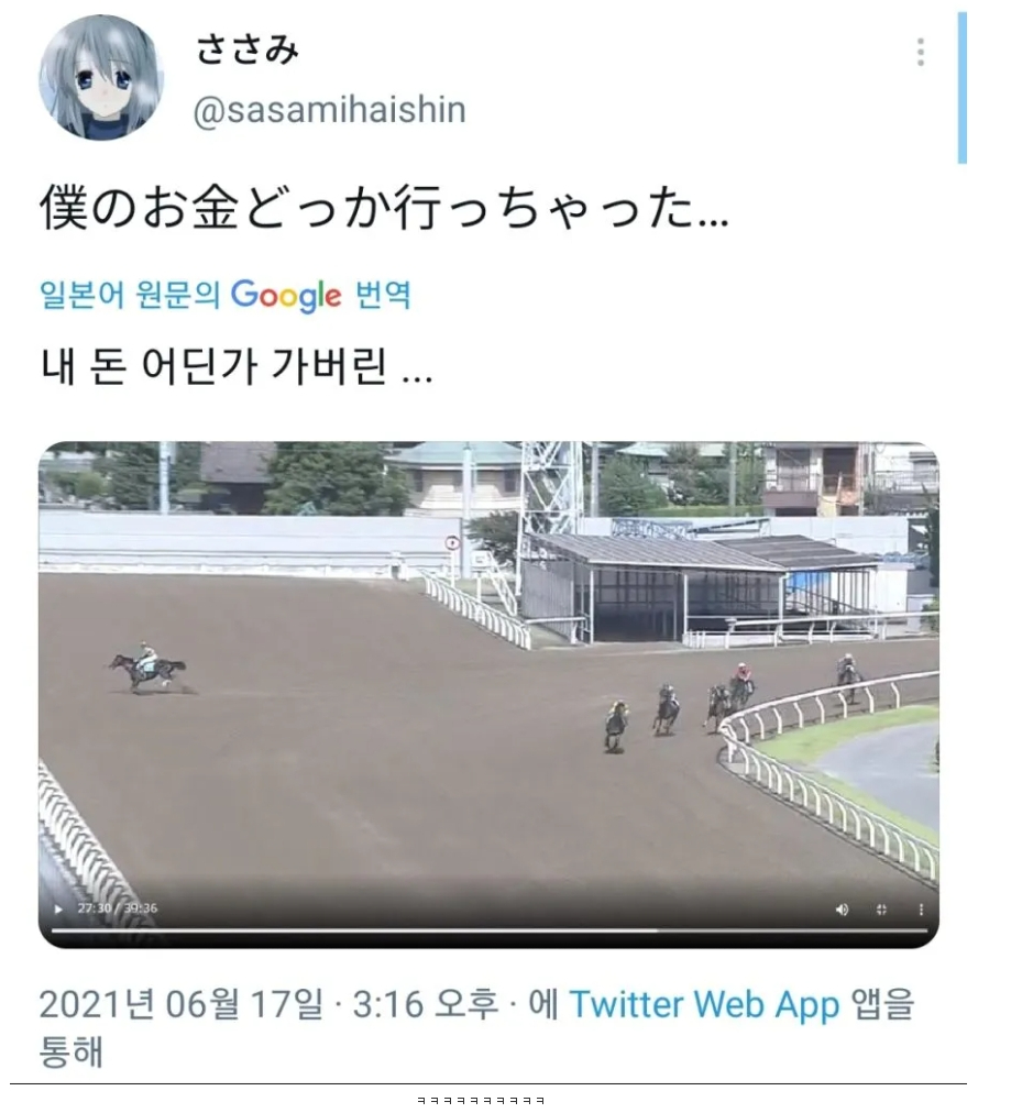경마를 보던 일본인의 한탄