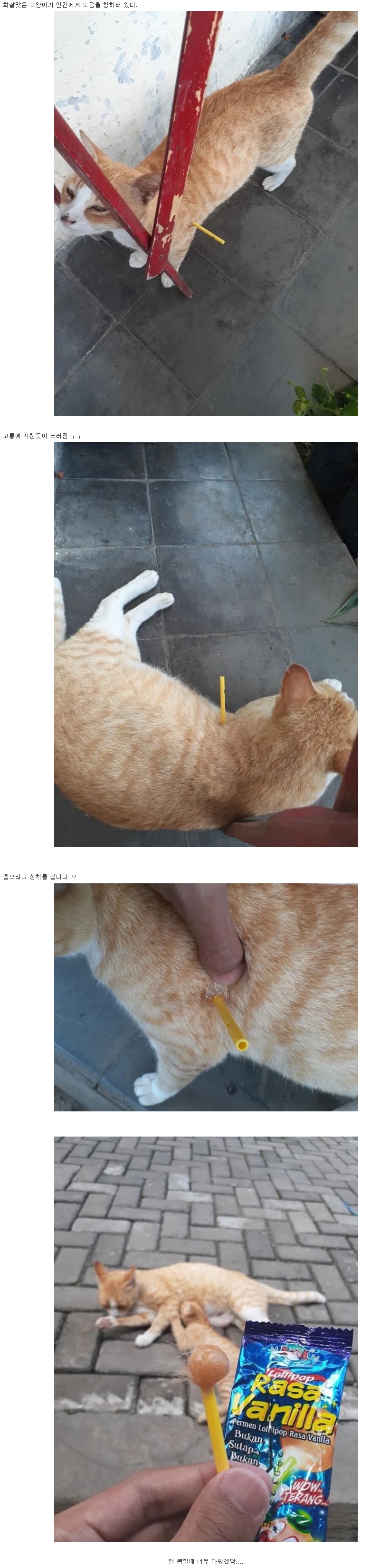 화살 박힌채 살아있는 고양이